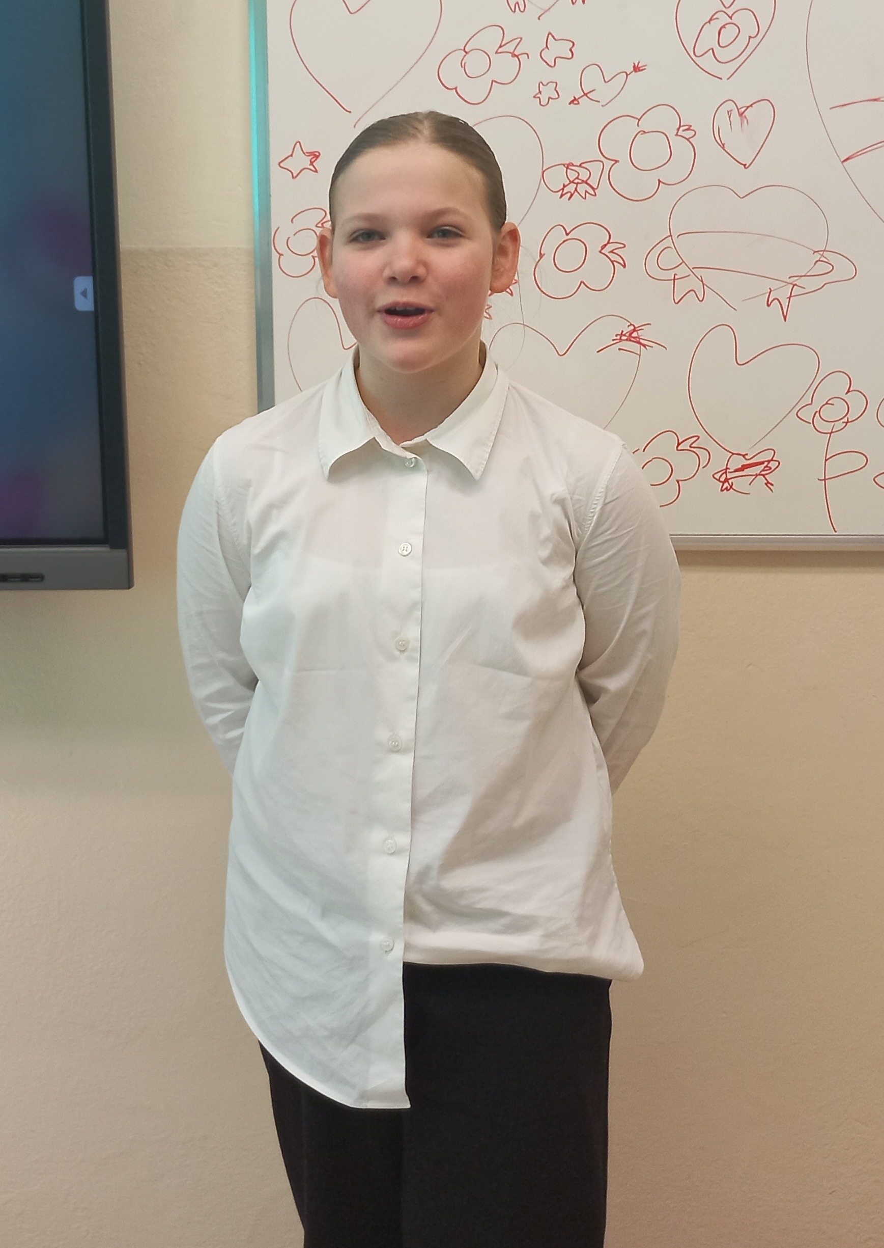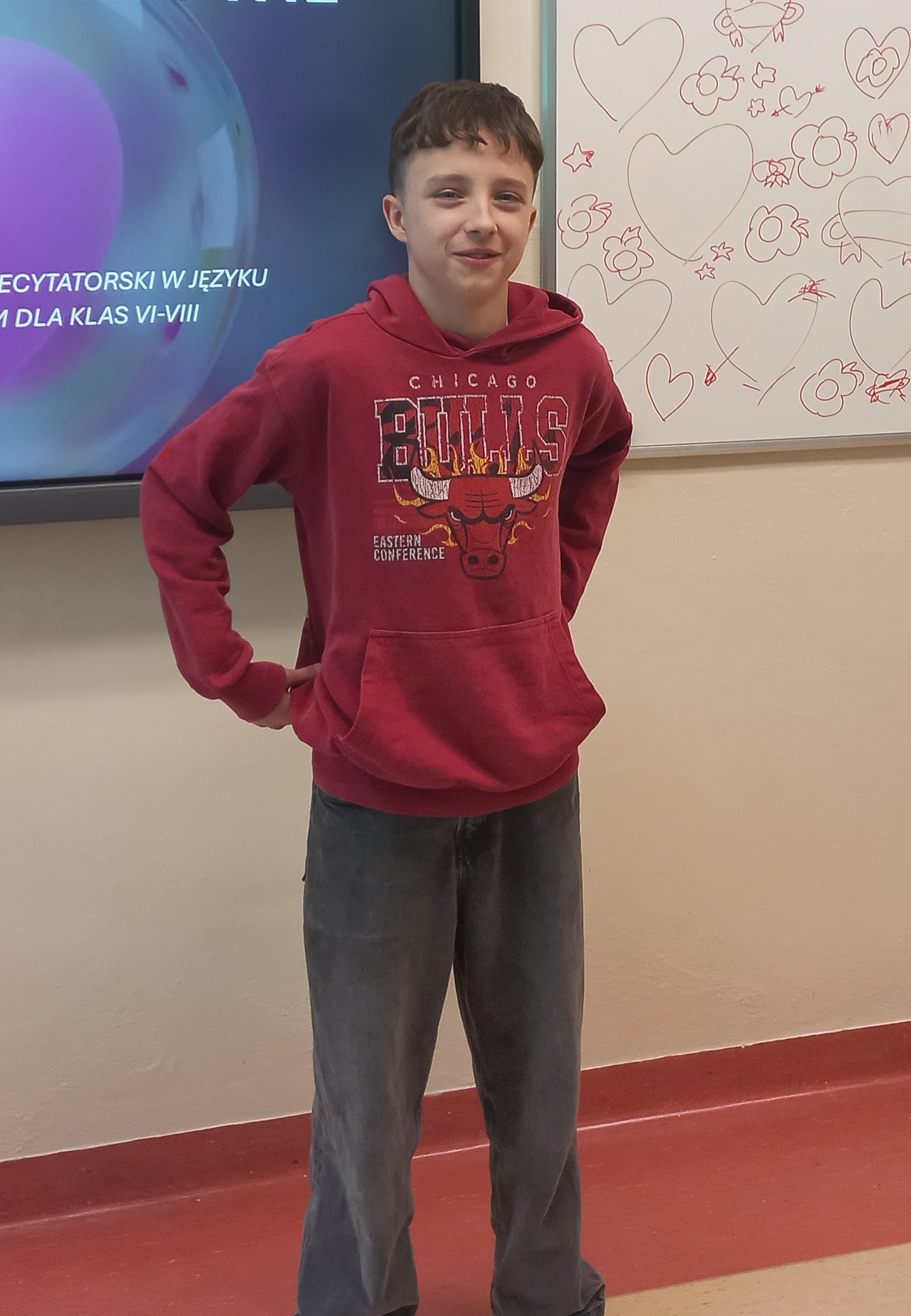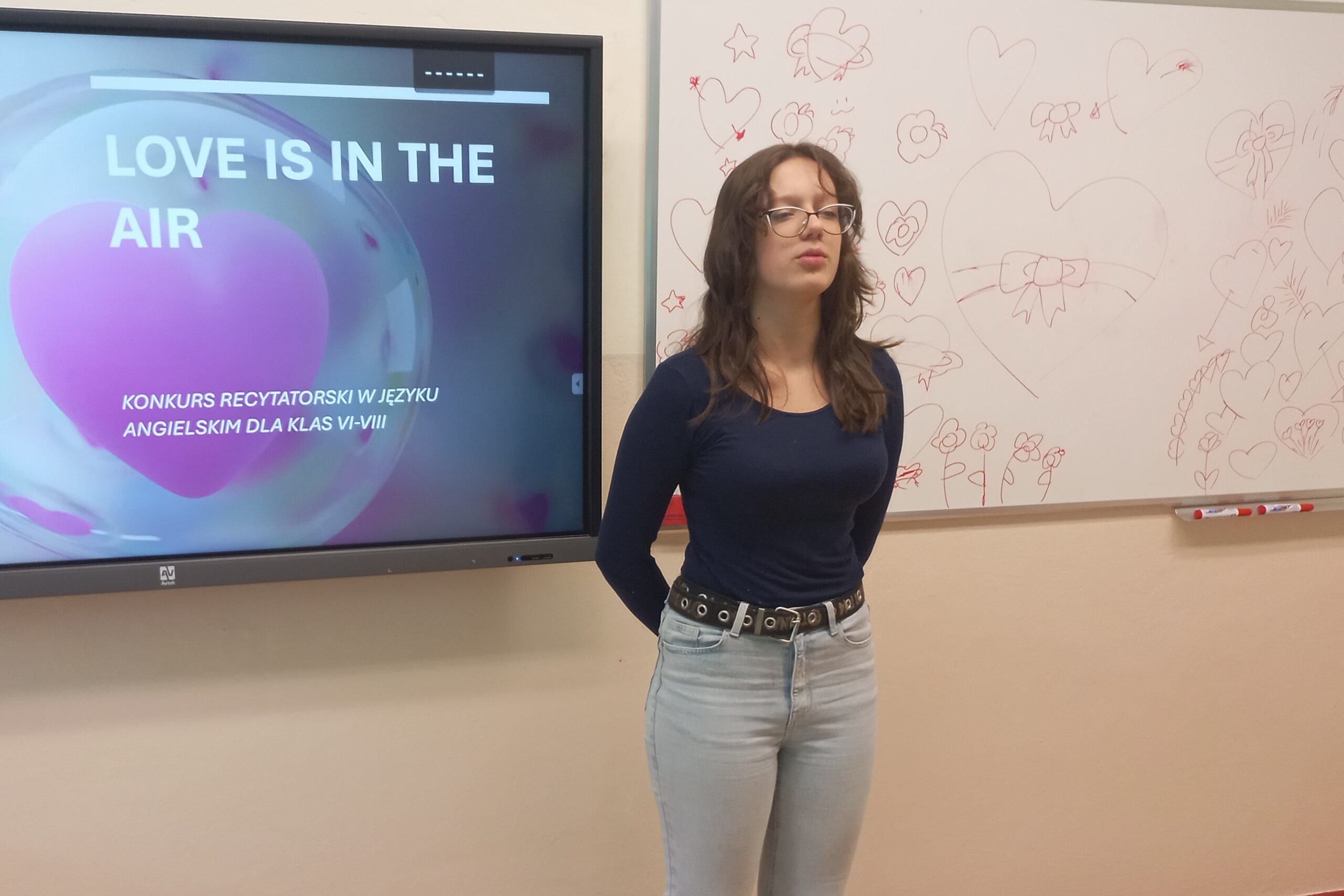 W dniu 25.02.2026 w ramach realizacji hasła roku, a także z okazji niedawnych Walentynek odbył się konkurs recytatorski w języku angielskim – „Love is in the air”. W konkursie brali udział uczniowie klas 6-8. Oto nasi uczestnicy: