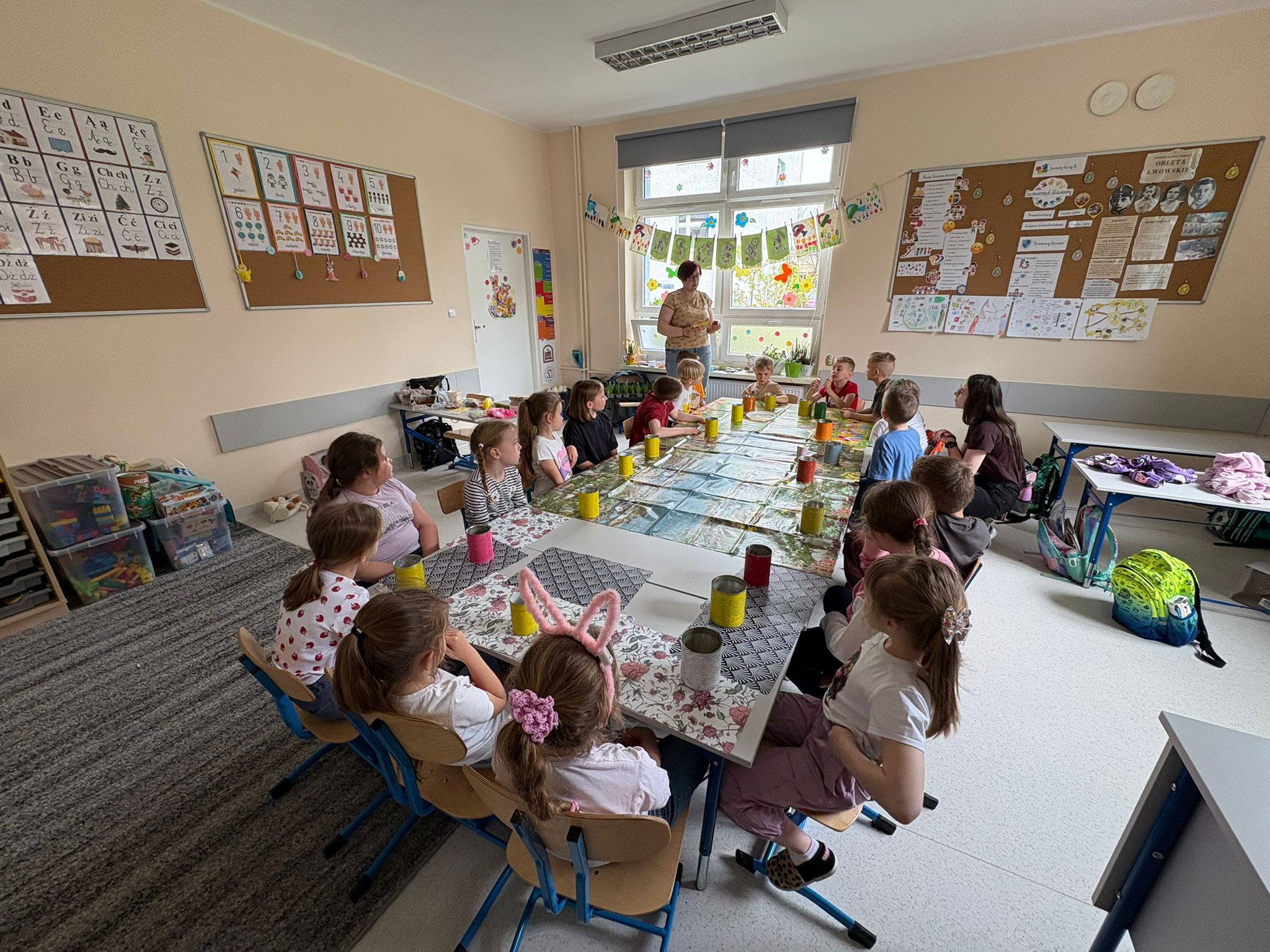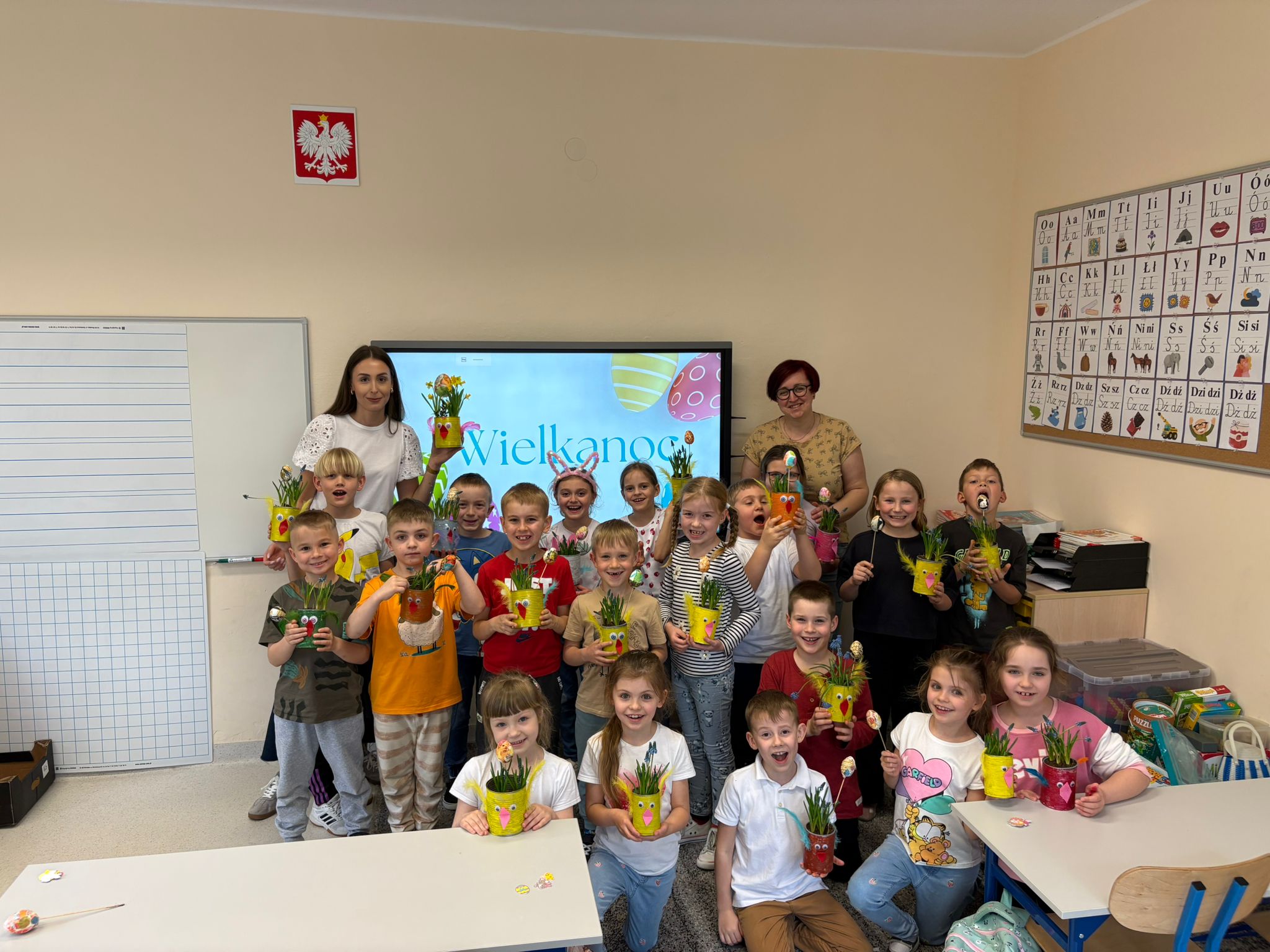 Uczniowie klasy 1b wzięli udział w twórczych warsztatach wielkanocnych, podczas których – pod czujnym okiem nauczycieli i z aktywnym udziałem mamy jednego z uczniów – przygotowywali kolorowe ozdoby świąteczne. Był to czas pełen radości, inspiracji i rozwijania zdolności plastycznych. Serdecznie dziękujemy za zaangażowanie i wspólnie spędzony czas!
