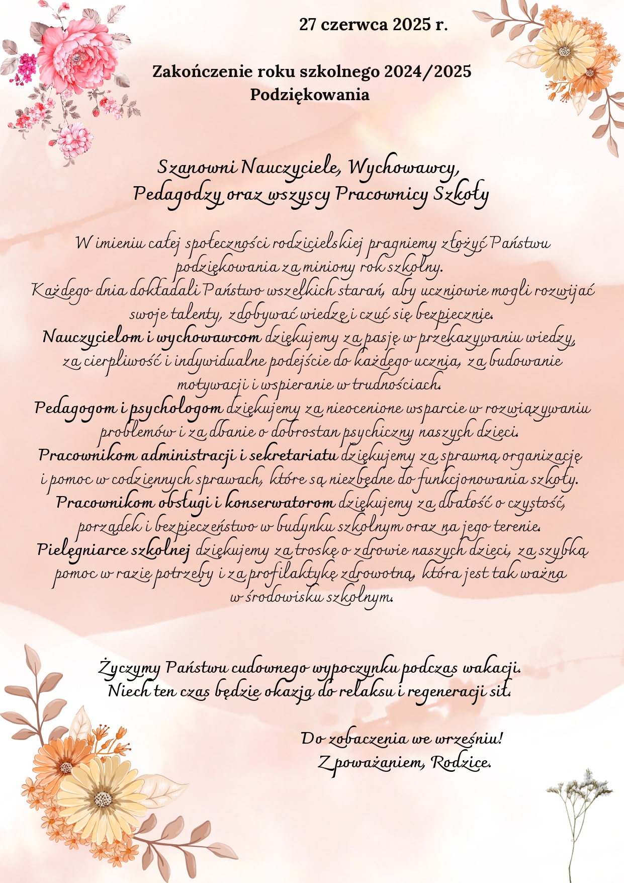 Zakończenie roku szkolnego 2024/2025